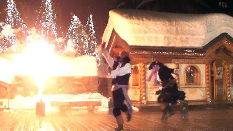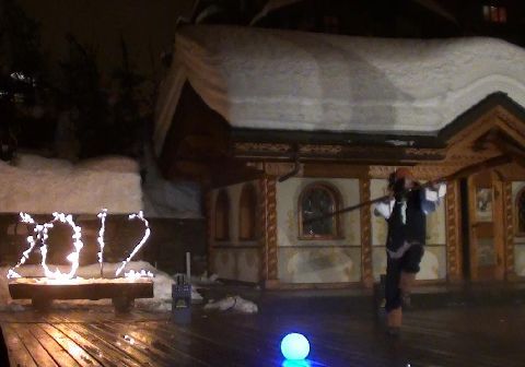 Cascades, duel d'escrime artistique et pyrotechnie, Pirates des Caraïbes. Les Airelles, Courchevel. Alexis DIENNA - Coordinateur cascade, chorégraphe de combat et cascadeur. Stunt coordinator and fight choreographer. Escrime artistique et duel de spectacle. Réglage show acrobatie tricking et freerunning. Coaching acteur, comédien et artiste.